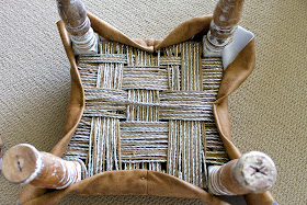 I chose a grey and white wool tweed fabric I found at Hancock Fabrics and used almost 4 yards.  I have "reupholstered" a few chairs before and followed the same easy procedure (click here to see the easy way!).